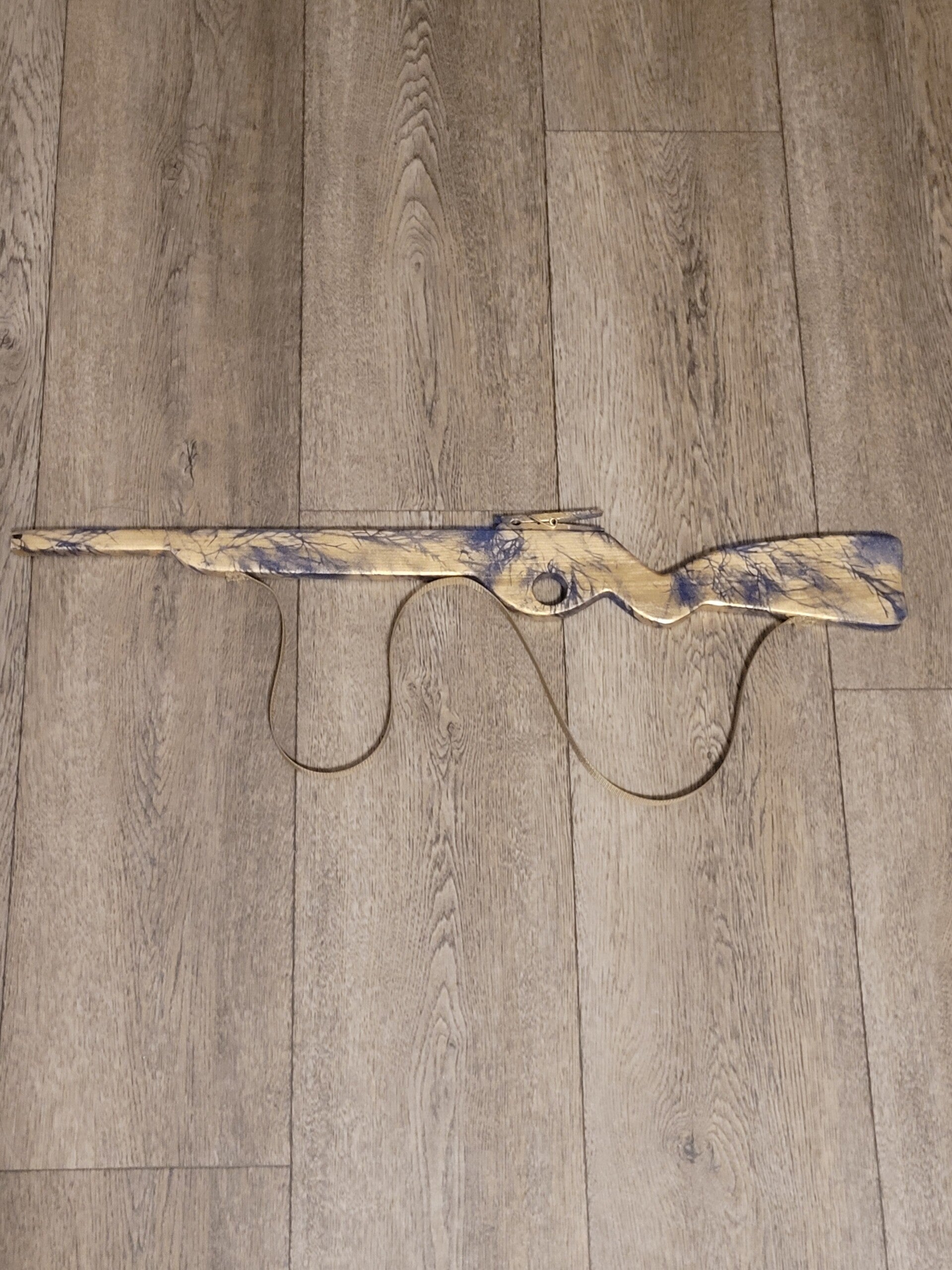 Please remark the color you would like your toy to be painted. Unless requested , otherwise , we paint all of our toy rifles in a camo style pattern. Comes with rubber bands.